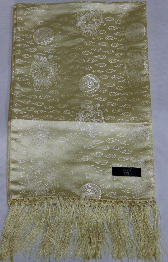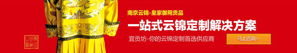 南京宜貢坊云錦文化科技有限公司成立于二OO一年,場(chǎng)地面積10000㎡,致力于做中國(guó)知名的云錦,宜貢坊云錦文化科技有限公司座落于江寧開(kāi)發(fā)區(qū)。做為江蘇云錦文化科技品牌之一,南京宜貢坊擁有雄厚的技術(shù)力量和實(shí)力,現(xiàn)有大型傳統(tǒng)花木樓織機(jī)幾十臺(tái),織造師、研究設(shè)計(jì)人員數(shù)百人。公司擁有直屬北京、深圳、上海辦事處和近千家緊密經(jīng)銷(xiāo)商、合作商;產(chǎn)品在南京中央商場(chǎng)、新百、上海八百伴、上海友誼商場(chǎng),泰州金鷹等全國(guó)多家大型商場(chǎng)均有專(zhuān)柜。
